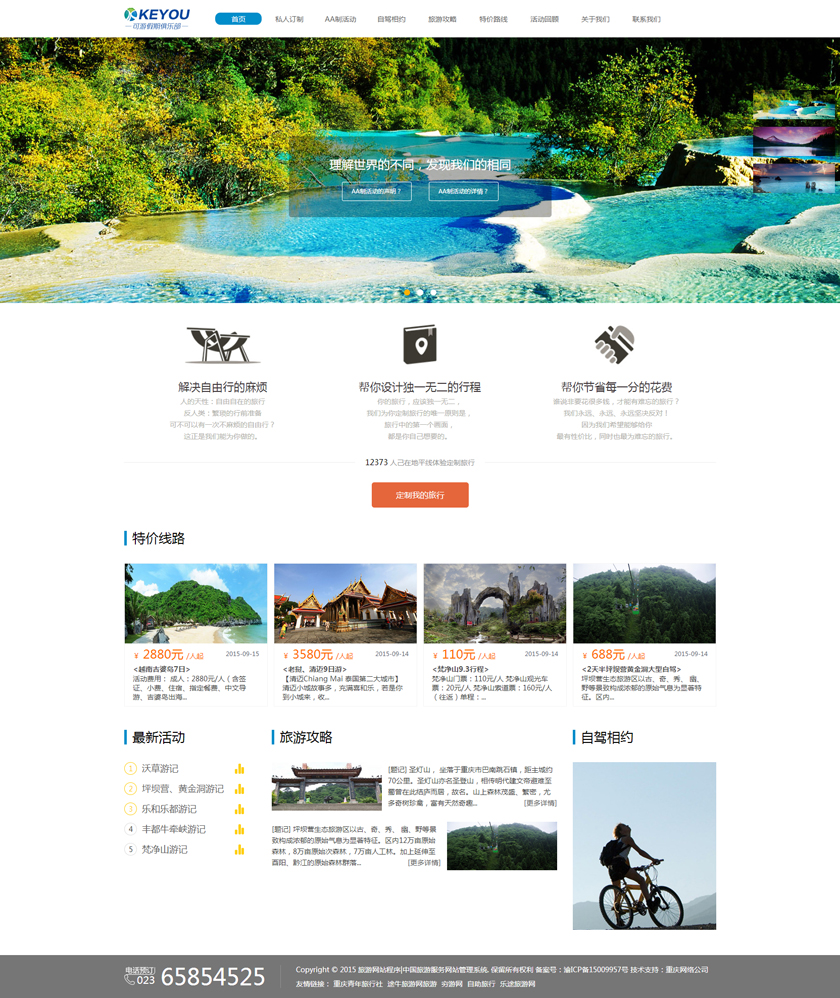 Project Description 6人游旅行网隶属于北京六人游国际旅行社有限公司。打造“为爱出行”:专为家庭,朋友,情侣间的旅行,提供私家小团精品游。打造高品质的旅行产品,解决传统跟团游和自由行存在的问题,将旅行服务做到臻善臻美。 Official website address 银川http://www.keyoujq.com I want to share