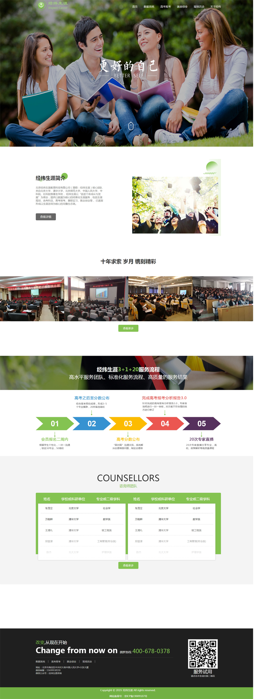 Project Description 北京经纬生涯教育科技有限公司(简称:经纬生涯)核心团队来自北京大学、清华大学、北京师范大学、中国人民大学、中科院、社科院等著名学府, 经纬生涯以“促进个体成长与发展”为使命,提供以数据为核心的结果化生涯服务,包括生涯规划、选考科目、高考报考、兼职实习、就业创业等, 已逐渐形成以生涯咨询为核心的完整生态链。 Official website address 银川http://www.jingweishengya.com/ I want to share